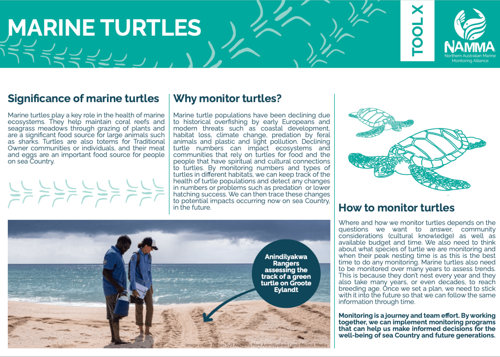 OUTCOME: Production of a user-friendly, culturally relevant guides that empower Indigenous rangers to conduct effective marine monitoring on Sea Country.