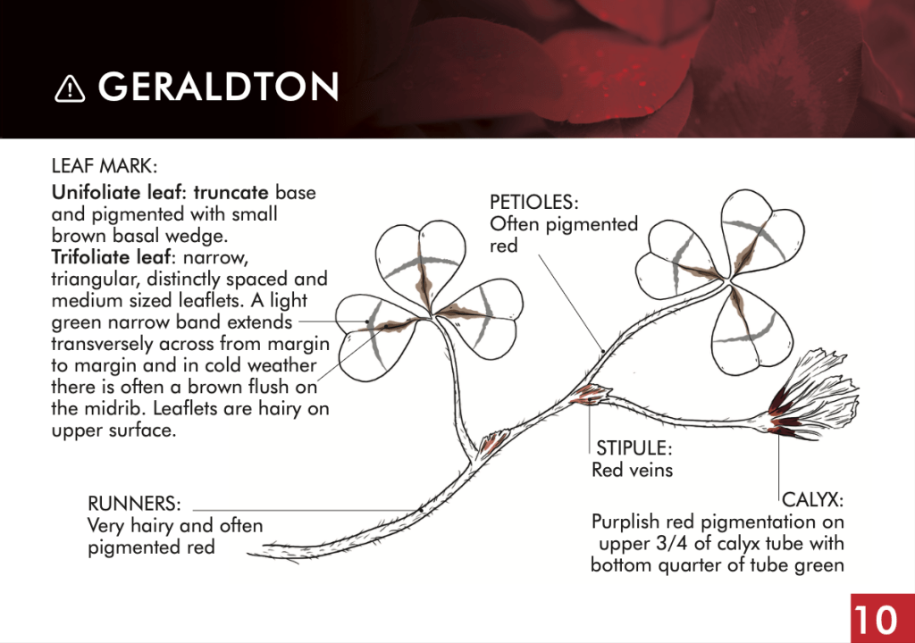 OBJECTIVE: Illustrate key identifying features of toxic subclover cultivars found in southern Australia. Design field identification guide for use by farmers.